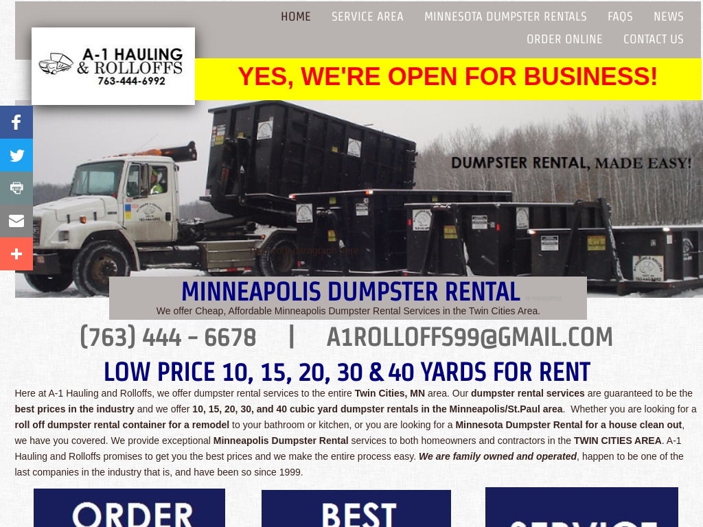 We offer 10 15 20 30 40 yard rolloff containers for rent. Here at Minneapolis Dumpster Rental Corp we are your specialist for getting the best deals when you rent a roll-off dumpster container in Minneapolis and the surrounding counties. ASAP Site Services of Hennepin has been a top provider of roll-off dumpster rentals in Minneapolis since 1984.